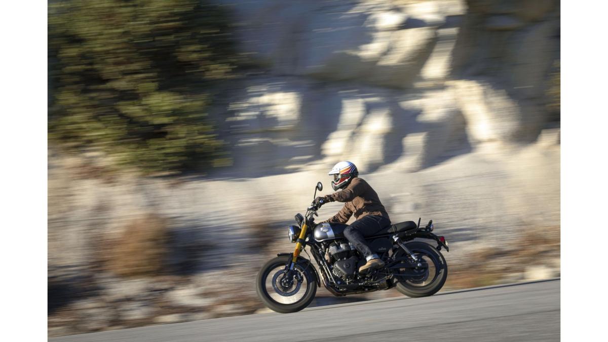 La Bear 650 es el fruto del instinto, potenciada por el célebre bicilíndrico en paralelo de Royal Enfield de 650 cc que le permite llegar a senderos forestales o realizar todo tipo de aventuras imprevistas. Con su terminación en negro premium, le aporta un aspecto robusto y determinado, tal como es el espíritu de una scrambler.